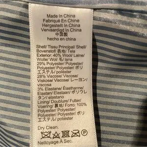 Classic tailored blazer with notch lapel. Two gold-tone front buttons. Flap pockets at the hips. Structured, polished silhouette for work or dressy casual.