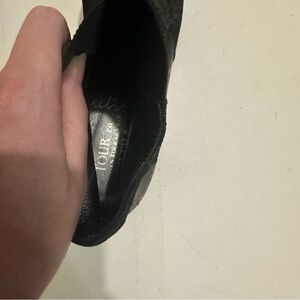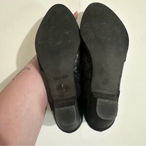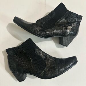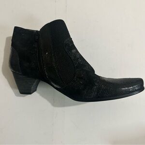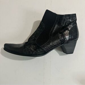 Un Tour En Ville Stylish Black Patent Metallic Leather Ankle Boots Size 42 / US 11.