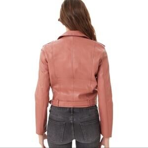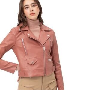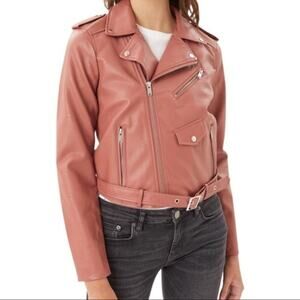 NWT Montrez Moto Jacket Womens M Pink Faux Leather Belted Zipper Edgy Bikercore