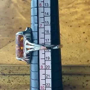 Natural Amber Sterling Silver Cocktail Ring Size 8