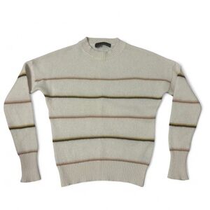 360 Cashmere Women's Sweater - Cream with Tan and Gold Stripes
