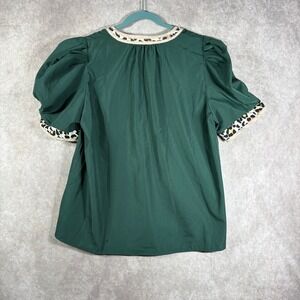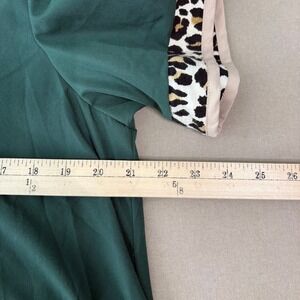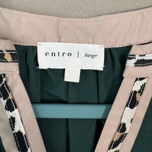 Entro Top Womens Size Large Forest Green Cheetah Print Trim Short Sleeves Boho