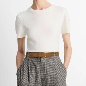Vince Wool & Cashmere Blend Short Sleeve Sweater in Off White