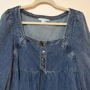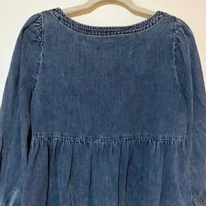 Baltic Born Gretchen Babydoll Long Sleeve Denim Mini Dress Size Large Western