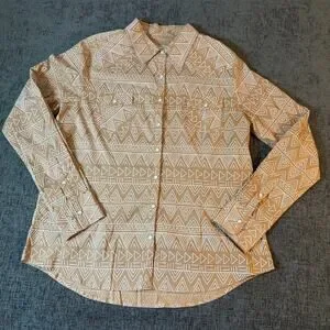 Outback Trading Company XL Womens Aztec Western Snap Shirt in Tan/Brown Color