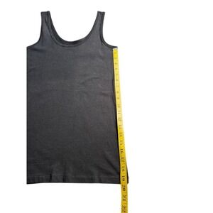 Embrace effortless style with this essential scoop neck tank top, crafted from a soft cotton blend with a hint of stretch for the perfect fit. This versatile piece serves as the ultimate foundation for any outfit, whether you're layering it under a blazer for a polished look or wearing it solo for a relaxed, casual vibe. The timeless black hue and flattering silhouette make it a reliable go-to for your everyday wardrobe. This item is in excellent pre-owned condition.