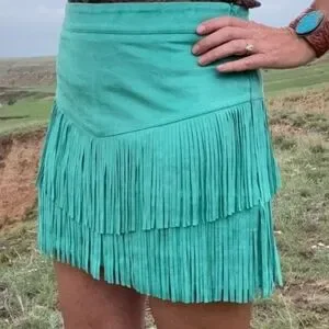 Sterling Kreek Ladies Size L Fringe Skirt W/Built In Shorts Fringe Western Teal