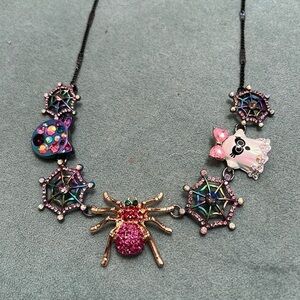 Here is a New BETSEY Johnson Multi Color Crystal Halloween Pendant Necklace