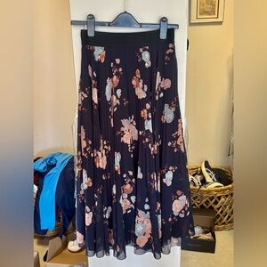 Wilfred Black Pleated Skirt with Blush Pink & Light Blue Floral Print