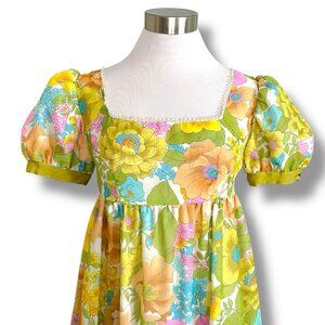 Vintage 1960's Boho Floral Puff Sleeve Maxi Dress