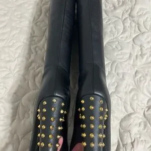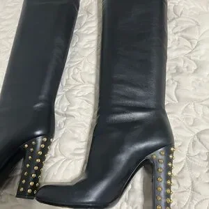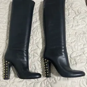Gucci Studded Heel Knee High Boots Black Leather Womens EU 38 US 7.5