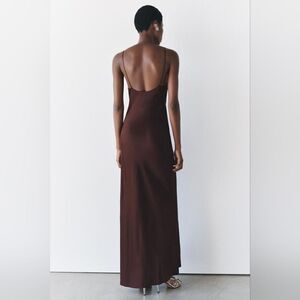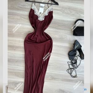 NWT ZARA LACE SLIP DRESS ZW COLLECTION satin silk maxi dress Lingerie Burgundy
