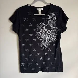 Y2K Twisted Courtesy Black White Skull T-Shirt Juniors XXL 19 y2k skull grunge