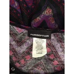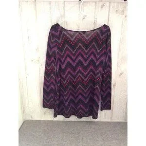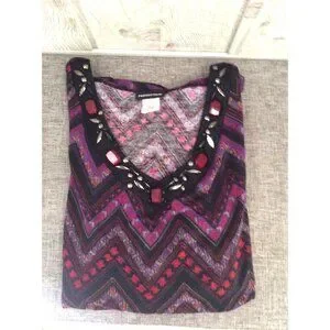 Perseption Women L Black Purple Shirt Zigzag Print Beaded Rhinestones Career