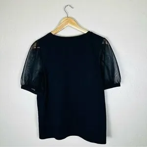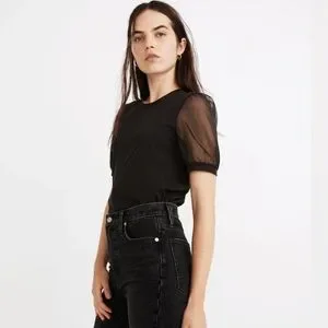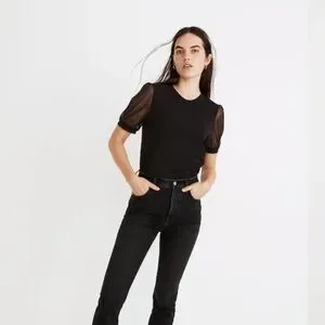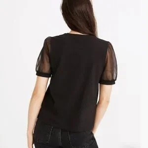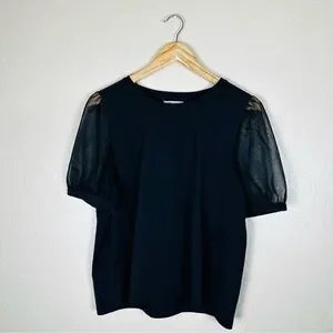 Madewell Women’s Black Sheer-Sleeve Knit Top Size Large