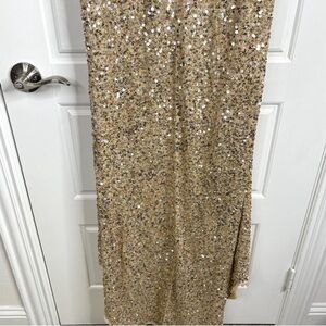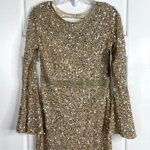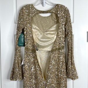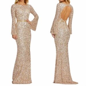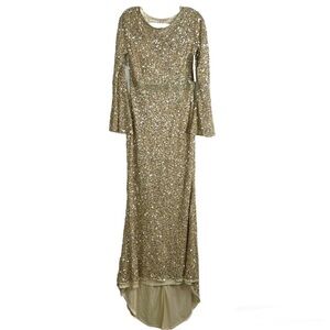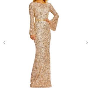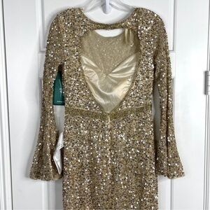MAC DUGGAL Long Sleeve Sequin Column Gown NEW Gold Size 6