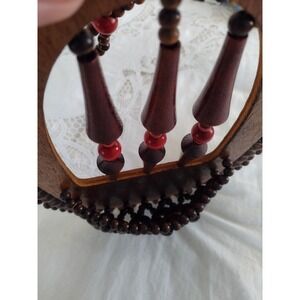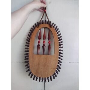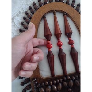 VTG Wood Bead Beaded Plant Hanger Hanging Wall Pocket Sconce Boho Tribal 70s