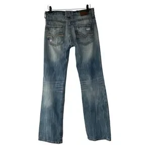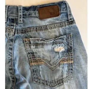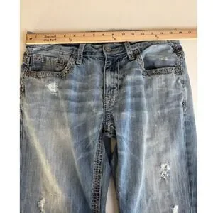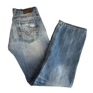 BKE Carter Straight Leg Jeans Mens 32x33 Light Wash Distressed Blue Denim