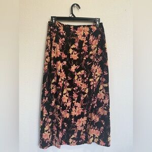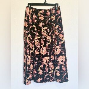 Free People Retro Love Floral Midi Skirt Button Front Slit Boho Size 6