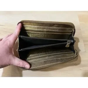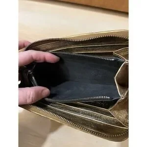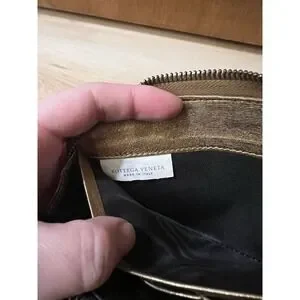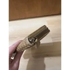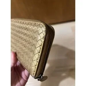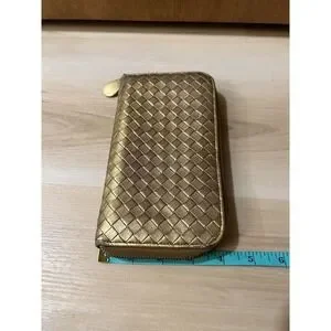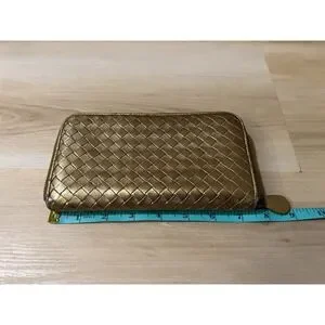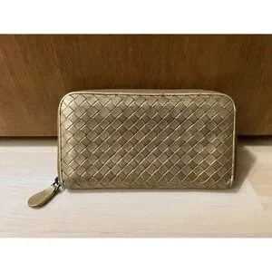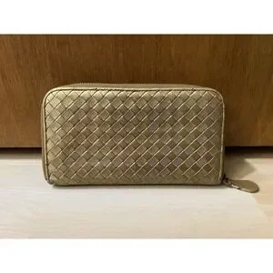 Bottega Veneta Gold Intrecciato Leather Zip Around Wallet Metallic Shiny