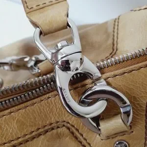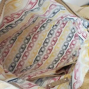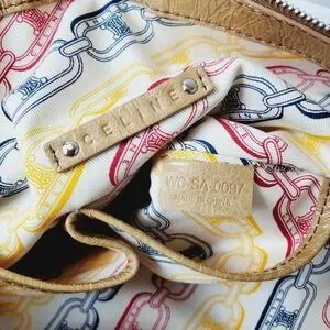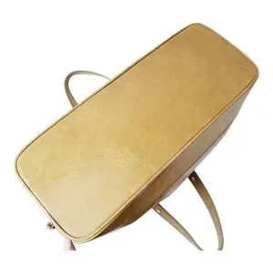 CELINE Wrinkled Patent Leather Bag Handbag Shoulder Beige Tote Logo Tan