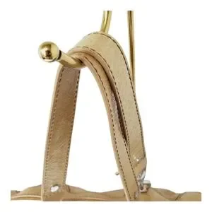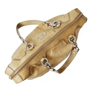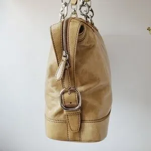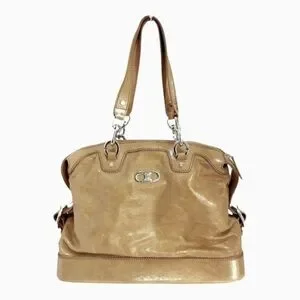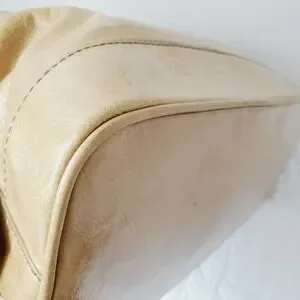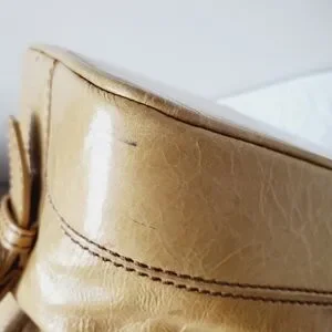 CELINE Wrinkled Patent Leather Handbag Shoulder Bag Beige Tan Tote Triomphe