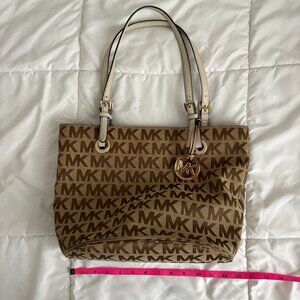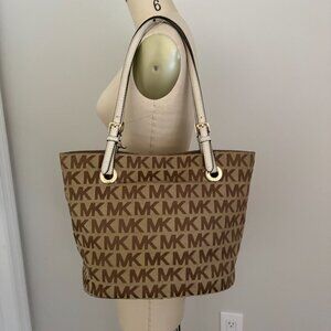 MICHAEL Michael Kors Brown Signature Jet Set Canvas Tote Cream Handles Shoulder Bag