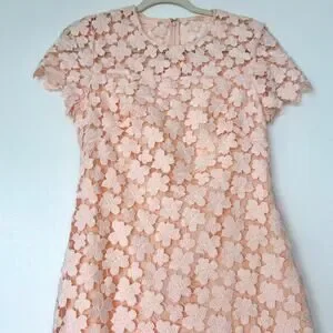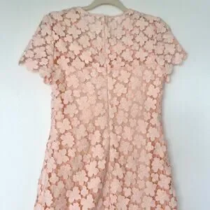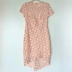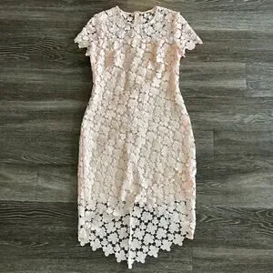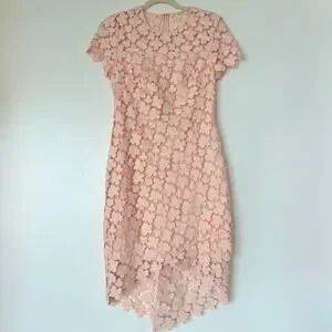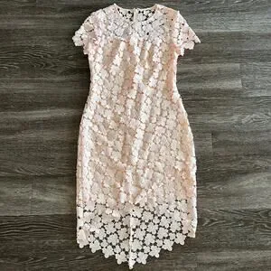 New with tags Shoshanna dress - bought at Anthropologie. Elegant blush pink lace dress with dimensional floral overlay and scalloped hem.
