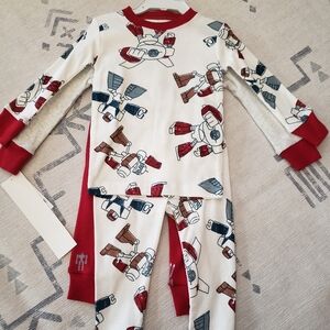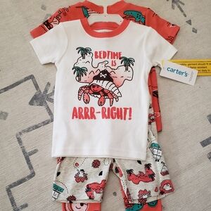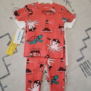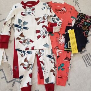 Adorable lot of pajama sets from Carters and Old Navy. All 5 sets are new with tags; 4 are Carters brand and one is Old Navy. All are size 12 months. Adorable prints featuring robots and space designs, pirates and sea animals, and snakes. Includes vibrant red, white, orange and navy colors.