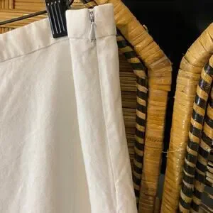 Dreamy vintage Tweeds white skirt featuring eyelet cutout floral embroidery along the hemline. Midi length with side zipper and lining for comfort. Linen/rayon blend fabric gives it a soft drape and breathable feel. A perfect cottagecore, coastal, or boho piece that can be styled with sandals, boots, or a simple tank.