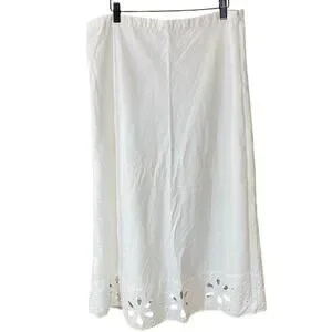 Vintage Tweeds White Linen Blend Eyelet Embroidered Midi Skirt Size 14 boho