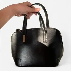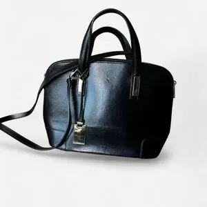 Vera Pelle Black 100% leather cross body bag with gold hardware and zip closure