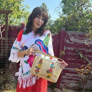 bright floral, woven rattan, ethnic inspired, vintage handbag, summer accessory, boho chic, 50s style, casual elegance, colorful embroidery, lightweight tote