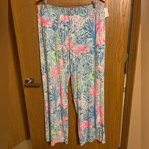 Bright pants with a smocked waist. Features pink, blue, and green patterns and oh so comfy! This vibrant piece is perfect for adding a splash of color to any day. Gently adult worn, vibrant bright colors, only ever hand washed and hung air dry. No holes, no stains, no fading. Smoke free home. Check out my other Lilly Pulitzer listings among lots of other items. Make a bundle or offer and save! Thanks for looking!