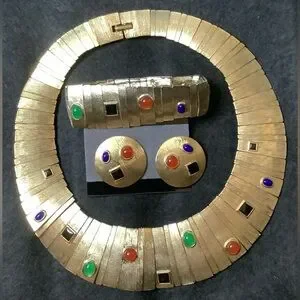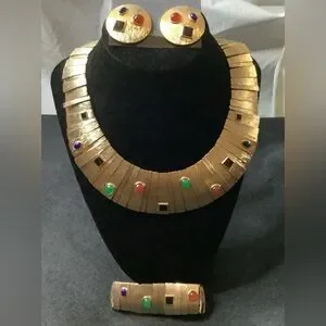 VINTAGE LES BERNARD Unsigned Gold-Toned Egyptian Revival Jewelry Set NWOT