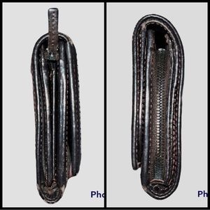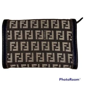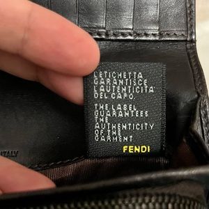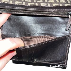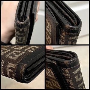 This gorgeous, classic vintage Fendi wallet is in excellent condition, only signs of use/wear are some rubbed areas on each of the corners (see listing photo with closeup of each corner) on the dark brown leather section - this could easily be painted/repaired if desired. I bought this wallet YEARS ago in consignment and it's just been sitting in my closet unused! I am not sure of the exact age but it is vintage!
