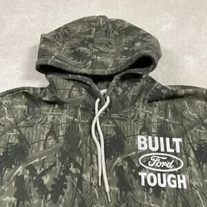Ford Hoodie Mens 2XL Green Camo Built Ford Tough Pullover Sweatshirt Truck