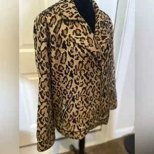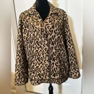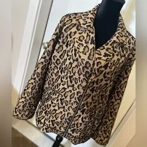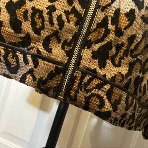 Chico’s~NWT~Jacquard~Leopard Print~Faux Leather Detail~Lined~Moto Jacket~Size 3