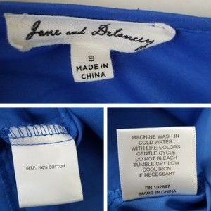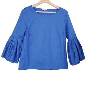 Jane & Delancey Blue Cotton Bell Sleeve Blouse Women's Small 3/4 Sleeve Peasant