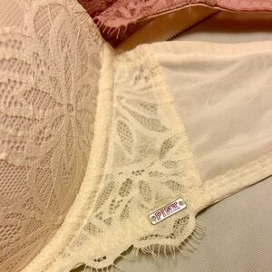 Set of 3- black, tan and cream lace bras.