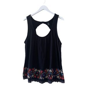 Torrid Sleeveless round Neck Top Womens Size 2 (2X) black knit embroider blouse #1280