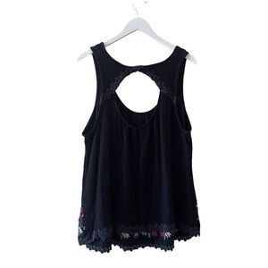 Torrid Sleeveless round Neck Top Size 2 (2X) black knit embroider blouse #1280