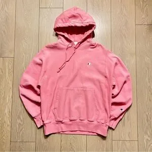 Champion Reverse Weave Pullover Hoodie Sweatshirt Pink Size M โCโ Logo