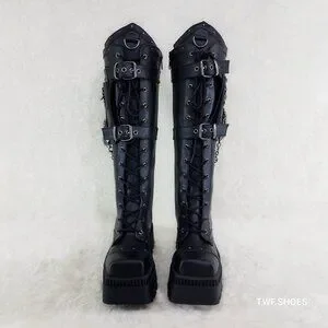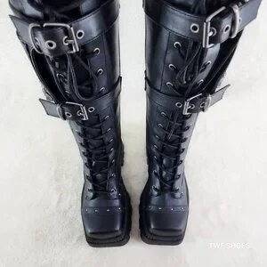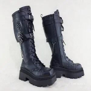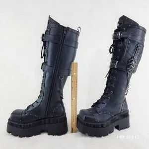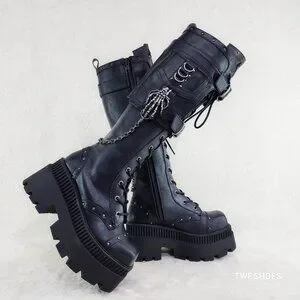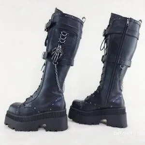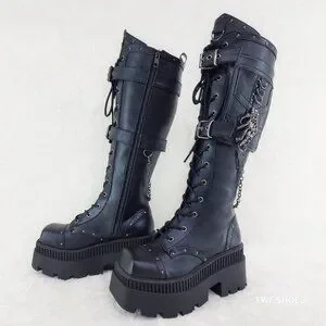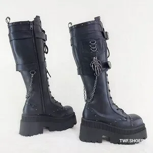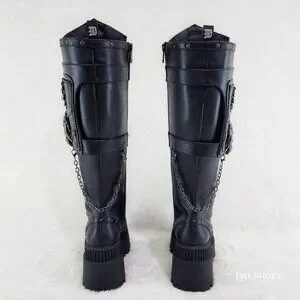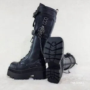Demonia Black Combat Boots with Chains