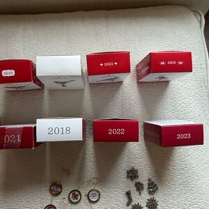 Hallmark Keepsake ornaments from the "Beauty of Birds" series 2011-2024 and 6 cross stitch mini ornaments and 6 pewter. 2011 black