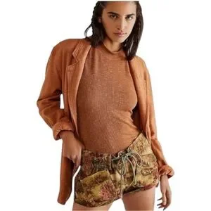 New Free People Printed Waimea Slouchy Shorts in Floral Earth Combo Medium