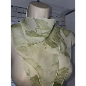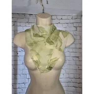 Womens Green Floral Sheer Square Neck Or Head Scarf