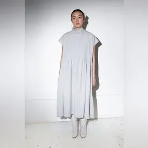 Our popular Jayme Dress made sleeveless and with a scarf tie neck. Perfectly oversized 100% Cotton. Curved waist. Billowing, easy-fit silhouette.