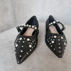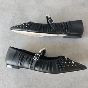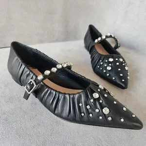 Antonio Melani Jennifer Sumko Flats 8 Black Leather LyssaLou Mary Jane New$130