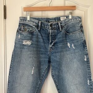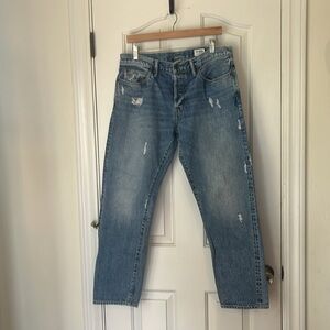 Still full price online. $198 MSRP. 100% cotton. Genuine Selvedge. 14-inch cuff opening. Shank button fly. Classic 5-pocket construction. Antique rivets. Chain-stitched embroidery. Size 34X30. In excellent condition.